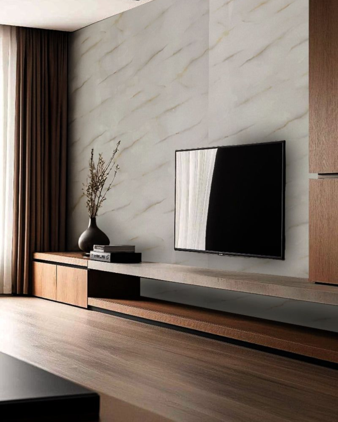 Compuesto por polvo de piedra caliza, PVC y estabilizantes, ofrece gran resistencia y durabilidad, con un sistema de instalación tipo click.